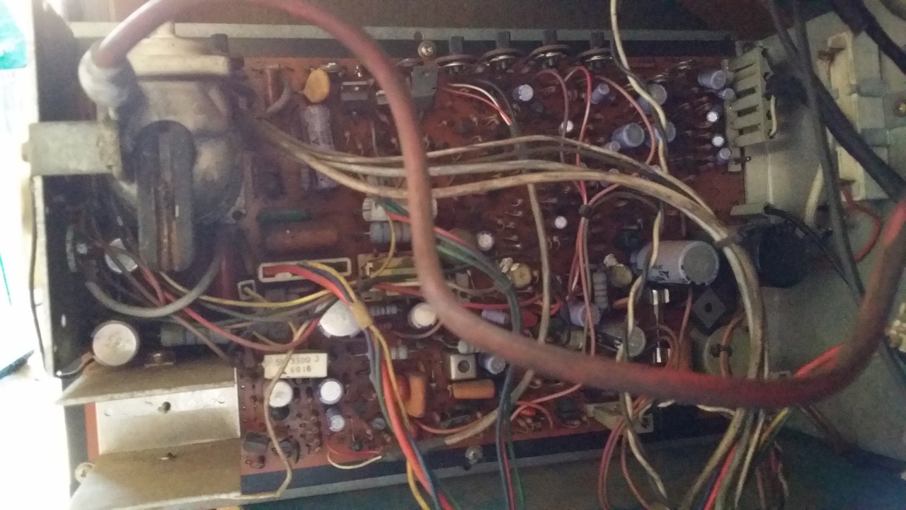 Looking at the attached, can you suggest anything else. There appears to be several dark spots on the board, and I am happy to replace the capacitors where needed. Wondering if you think this is the issue. I will also have someone re-solder the vertical IC if you think this will be helpful. I would also love it if you can show me on the pic where the Vertical IC is. I am learning but a bit green at this stage.