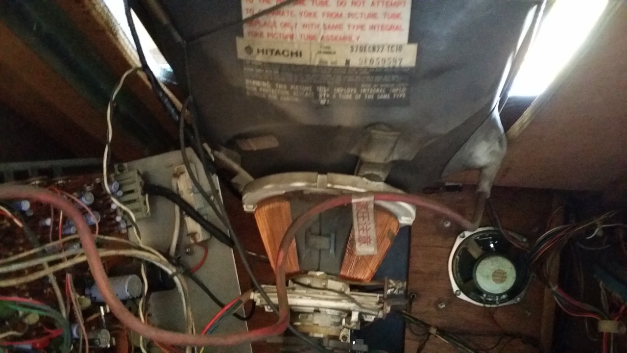First off, thank you for the pictures. It looks like you have either the Toei CM-R14 or R20 chassis. Keep in mind that this is just a guess and we would highly recommend checking out all of the chassis pictures on the What’s My Monitor page on Bob Roberts site and comparing them with your chassis to double check our suspicion. We’re not real familiar with this chassis in particular but we would definitely start off the repair by Installing A Cap Kit and checking for cold/cracked solder joints (especially around where the yoke wire plug into the board) as these can be a common cause for this issue.