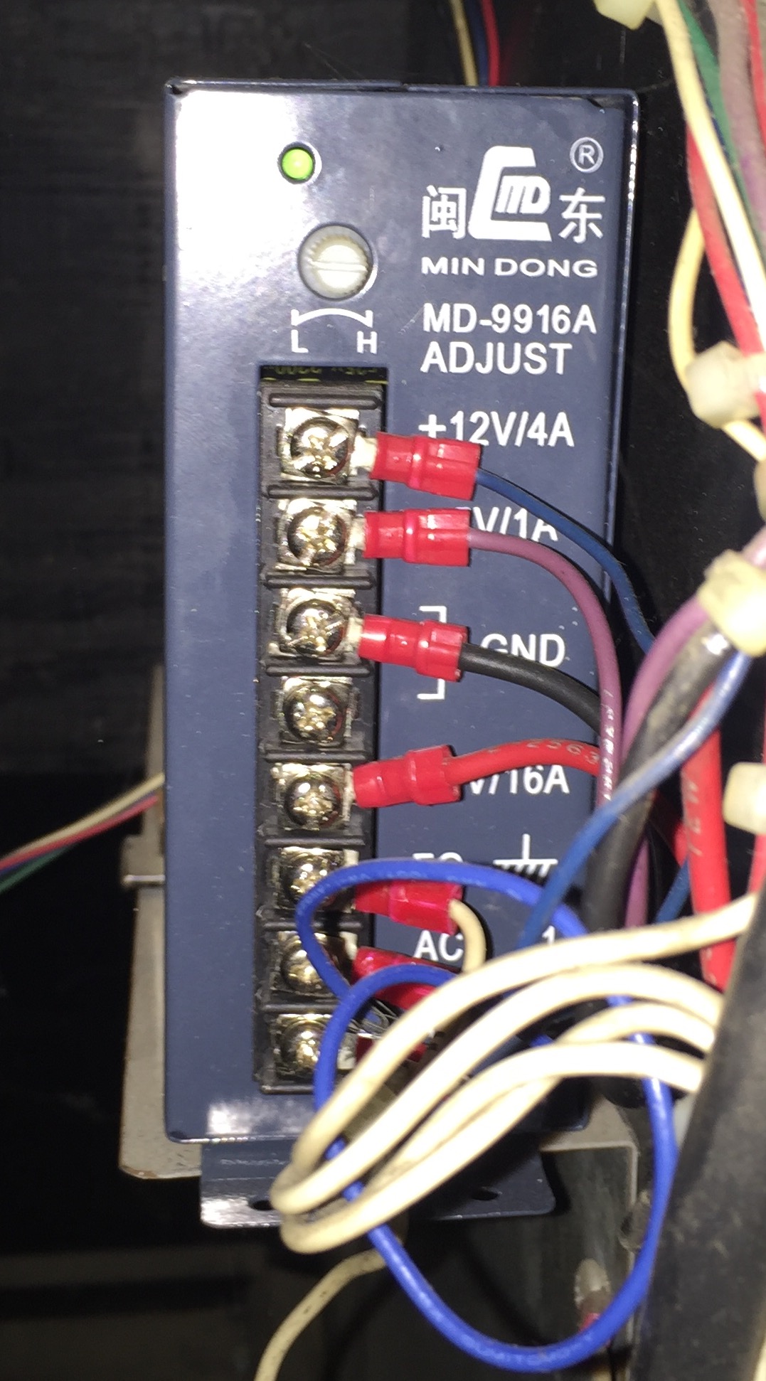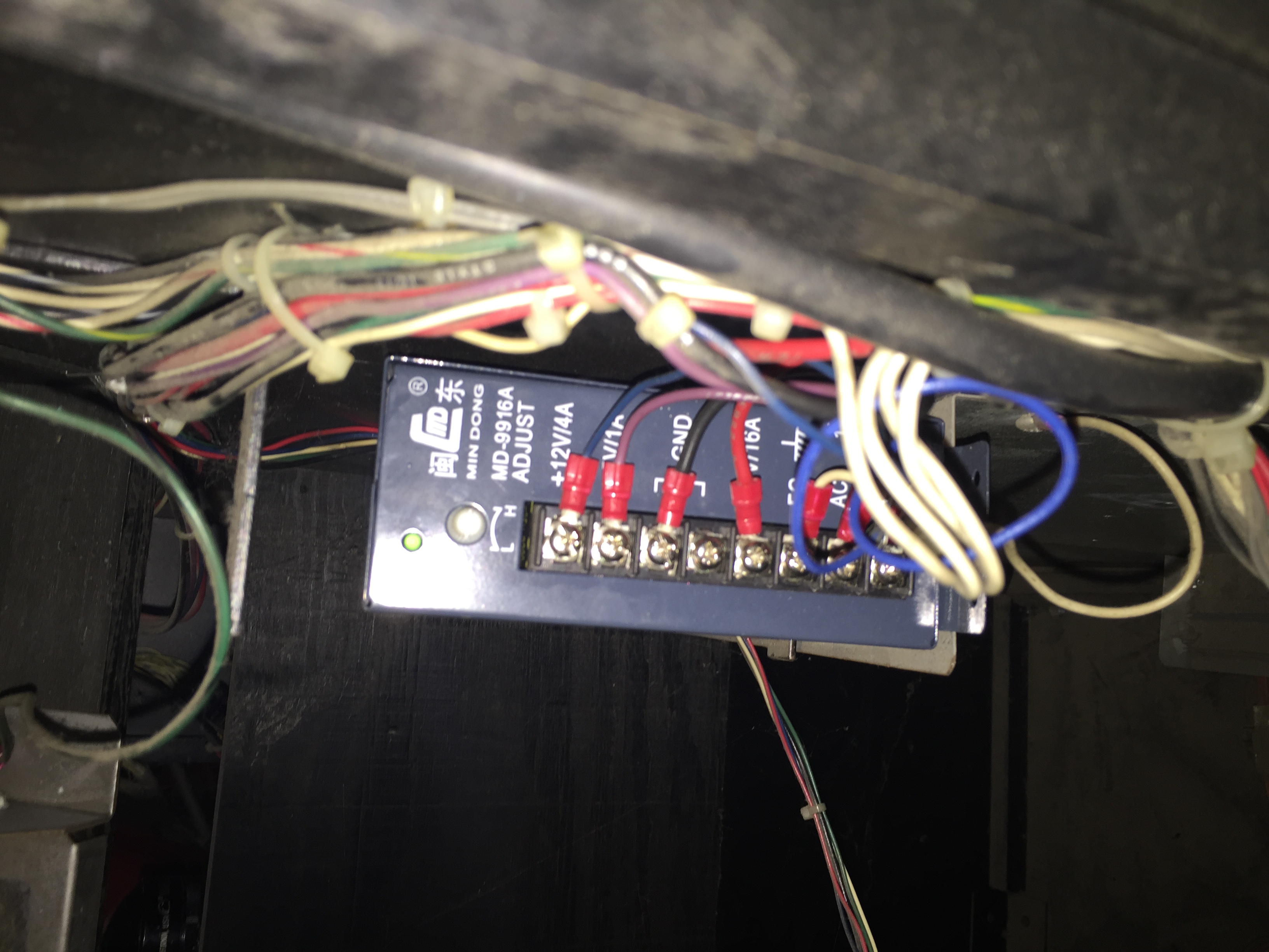 Actually you’re in better shape than we may have thought initially. It looks like someone has already upgraded your Time Pilot to a switching power supply which is great! Does the light on the power supply come on when you power the game on? If so, it means that your power supply is at least getting AC power from the wall plug but it doesn’t necessarily mean that it’s putting out the right DC voltage to the board. In order to check this, you will need a multimeter. At this point, we recommend checking out our post on Checking And Replacing A Power Supply which has some great information on working with power supplies like this one. If you determine the voltage is too low, you can try turning it up to see if it makes a difference. If you can’t get the DC voltages where they need to be, you may need to replace the power supply altogether. You can get a replacement from Twisted Quarter or any of the retailers listed under the Arcade Parts Suppliers & Distributors heading on our resources page.