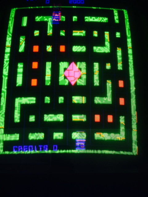 Question from Denis: Hi There, I have a Tron that I bought as a project. Overall its in pretty OK shape. When I turn it on everything works. The problem is The moving graphics are fuzzy with lines through them (i.e. the tank maze is perfect but the tanks and tank shells have big lines running through them). The light cycle arena and lines are perfect but the bikes are fuzzy and have big lines through them etc. Please see pictures. Do you think you can help? I do have access to another Tron unit with a damaged monitor and no control panel for parts. Regards, Denis